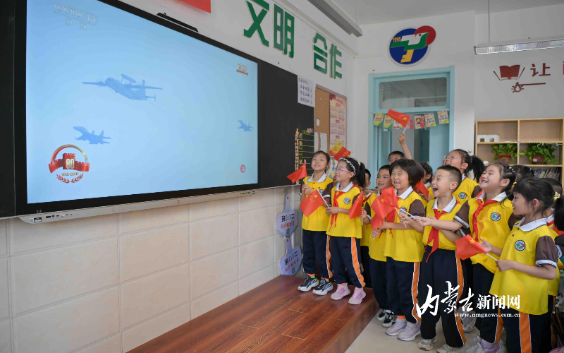 9月3日,呼和浩特市賽罕區(qū)東風(fēng)路小學(xué)學(xué)生觀看紀(jì)念中國人民抗日戰(zhàn)爭(zhēng)暨世界反法西斯戰(zhàn)爭(zhēng)勝利80周年大會(huì)。當(dāng)日,該校通過觀看莊嚴(yán)的紀(jì)念儀式,激發(fā)學(xué)生的民族自豪感和愛國熱情。攝影/草原云·內(nèi)蒙古新聞網(wǎng)首席記者 牛天甲