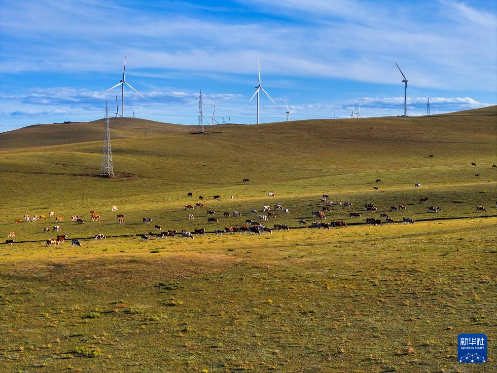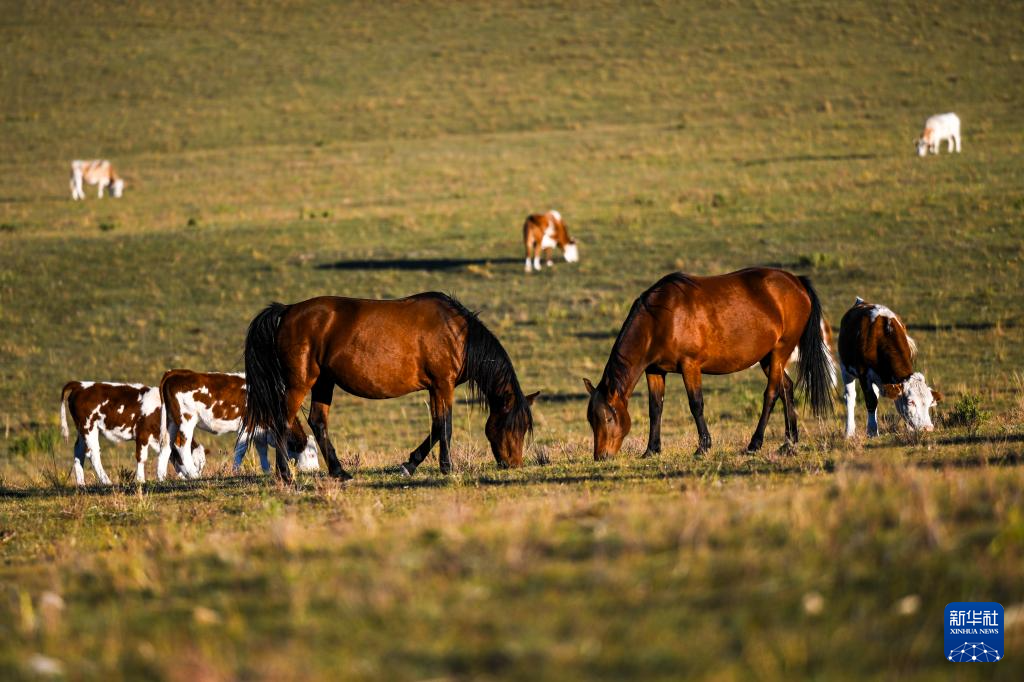 9月19日,畜群在草原上覓食。新華社記者 連振 攝