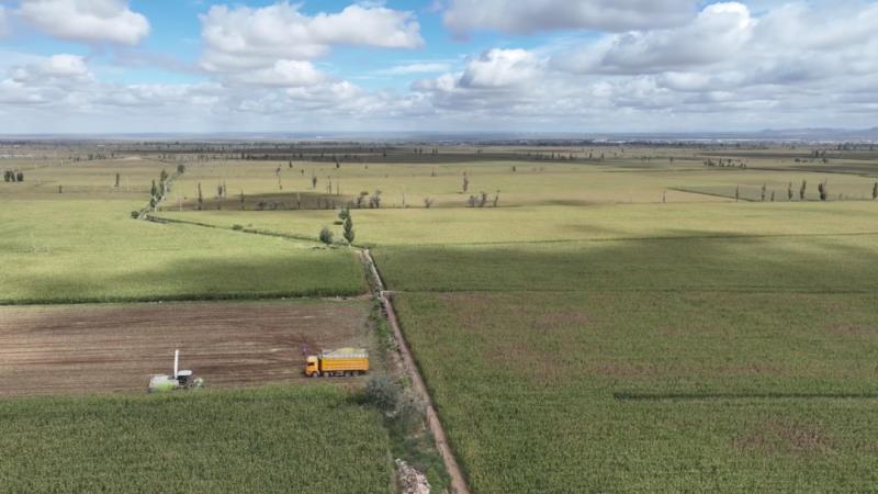 在阿拉善左旗巴潤(rùn)別立鎮(zhèn),內(nèi)蒙古浩澤農(nóng)牧林開發(fā)有限責(zé)任公司種植的1500畝青貯玉米迎來收獲。大型收割機(jī)開足馬力,在田間來回穿梭,一株株玉米被收割、粉碎成青綠飼料,隨即裝車運(yùn)往養(yǎng)殖場(chǎng)存儲(chǔ)池發(fā)酵,實(shí)現(xiàn)“收割—轉(zhuǎn)運(yùn)—儲(chǔ)存”的無縫銜接。