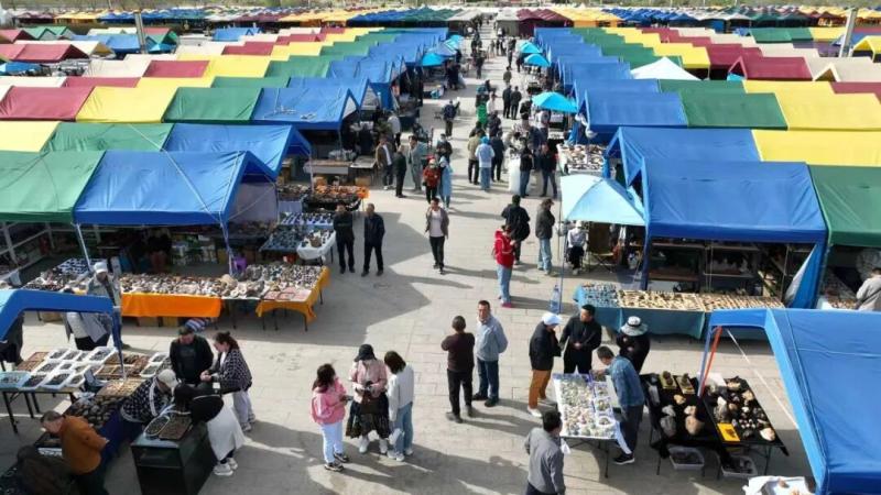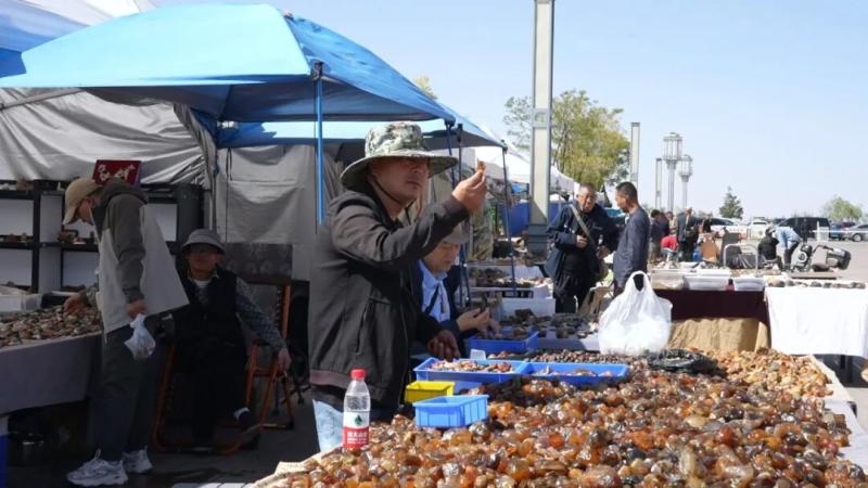本屆博覽會規模空前、亮點紛呈,設有戈壁石展區、寶玉石展廳、大自然展廳等多個特色板塊,各具風格,全方位展現了石文化的多元魅力。產業園內共開放860頂帳篷式主題展位與500多個臨時攤位,打造了集奇石交易、文化傳播與產業聯動于一體的綜合性平臺,吸引了來自全國二十多個省、市、自治區的數千家展商參展,展品涵蓋阿拉善玉、翡翠、瑪瑙、琥珀、水晶等上百個種類。