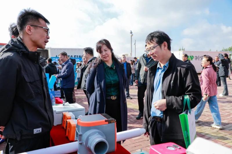 △與會人員在科爾沁區(qū)智能水肥自動化示范基地了解設(shè)備使用情況。