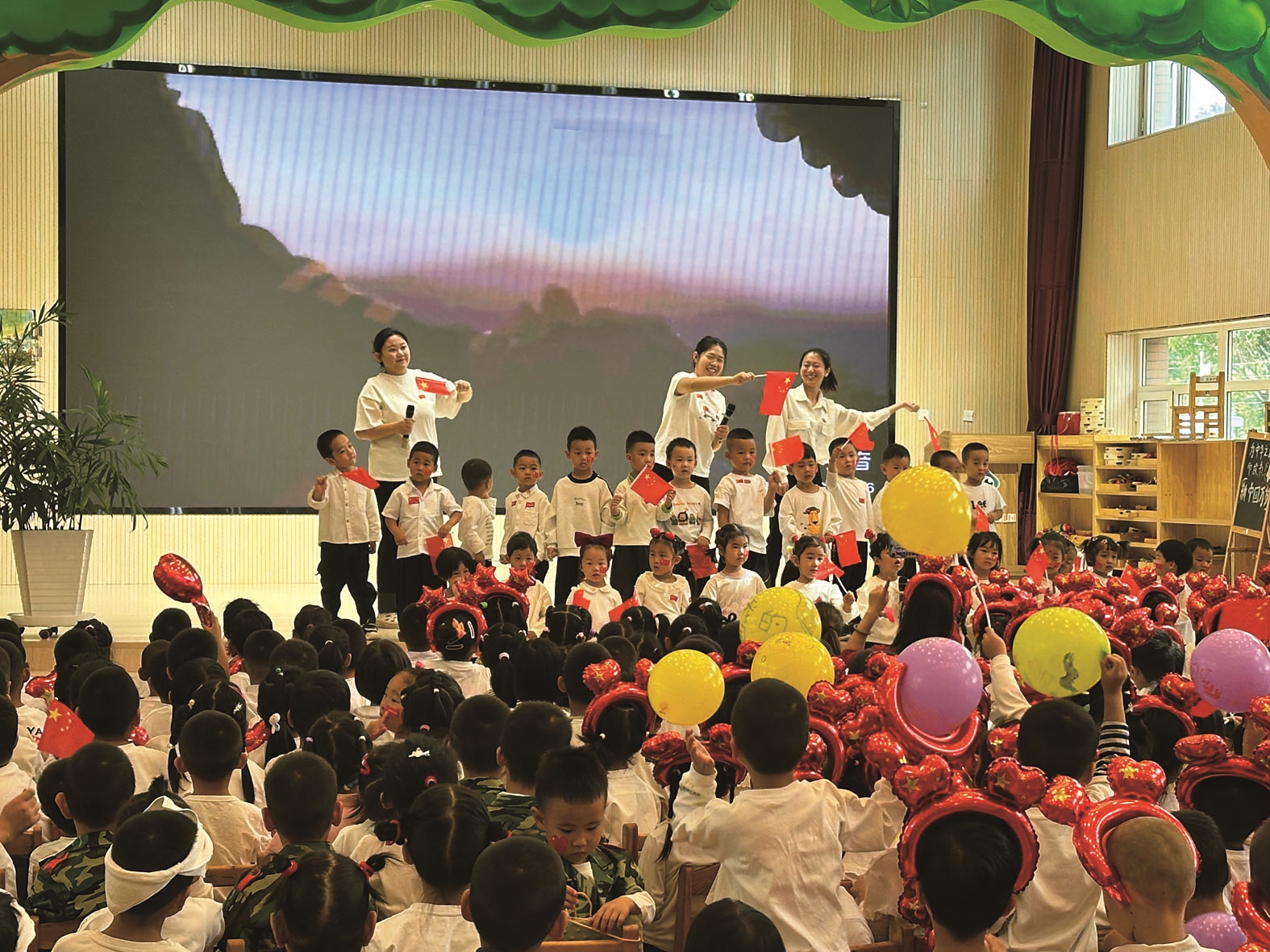 活動在合唱《愛我中華》中拉開序幕。隨后,老師帶領孩子們手持國旗,演唱《綠旋風》《祖國的花朵》《七子之歌》等,現場一派歡樂景象,增強了愛黨愛國愛家鄉的情感。 (王蒙)